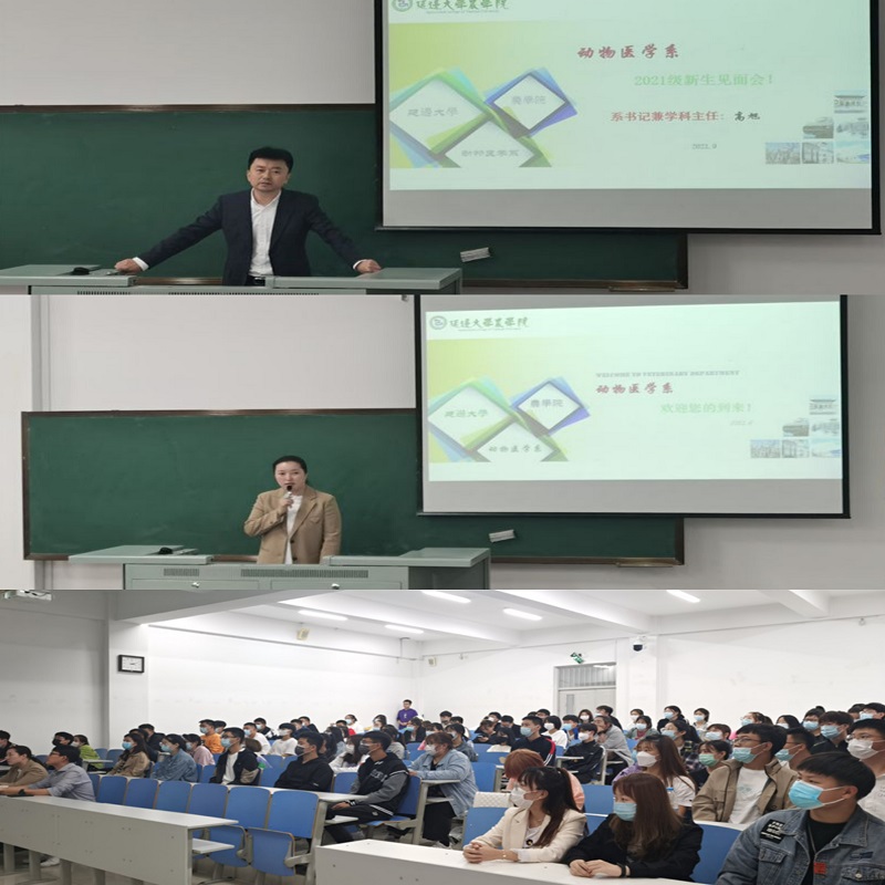 会议伊始,高旭老师介绍了莅临本次见面会的系领导和老师,代表全系师生向2021级动物生产类二班新生的到来表示热烈欢迎。老师在详细讲解招生概况之后,向同学们介绍了动物医学系的现任领导老师,并就目前动物医学系的发展沿革、专业建设情况、建设业绩、就业前景进行全面的解读。而后,老师在介绍令我系引以为豪的历届员工的同时,希望同学们以此为榜样,树立自己正确的人生目标,合理规划自己的老员工活。随后,李慧老师提醒同学们要以学习为主,踊跃参加活动,丰富业余生活,德智体美劳全面发展,同时强调,处在如今的新媒体时代,一定要提高防电信诈骗、校园贷、传销等危害社会行为意识,中秋节期间,务必遵守疫情防控相关规定,注意安全。