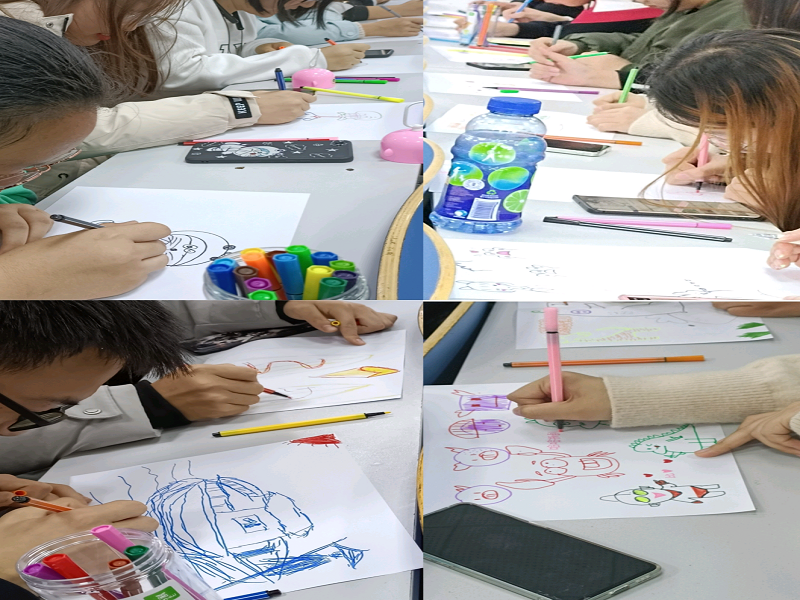 活动中,以“TA心里的样子”为主题进行作画,两人为一组,计时十分钟,十分钟后,两位同学互相交换作品,以此类推交换三次,最终结束画作,同学们与大家分享画作,看到彼此心里的自己。大家在老师指导下完成了绘画,老师鼓励员工把看不见、摸不着的情绪以图像化的形式表达出来,同学们在绘画的同时,自己的性格倾向、心理需要、心理问题等都在画中体现的淋漓尽致,让每个人都相互了解,相互沟通。最后由李淑玲老师对本次活动进行总结。老师指出本次活动核心是让同学们重视心理健康教育,希望同学们通过本次活动有进一步的收获。
