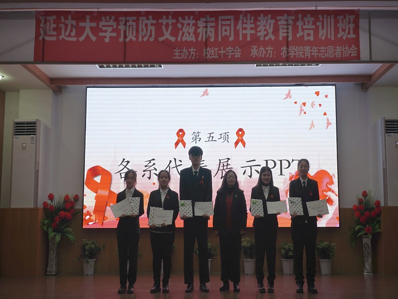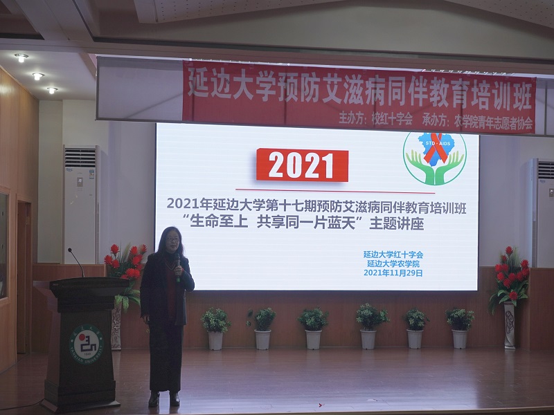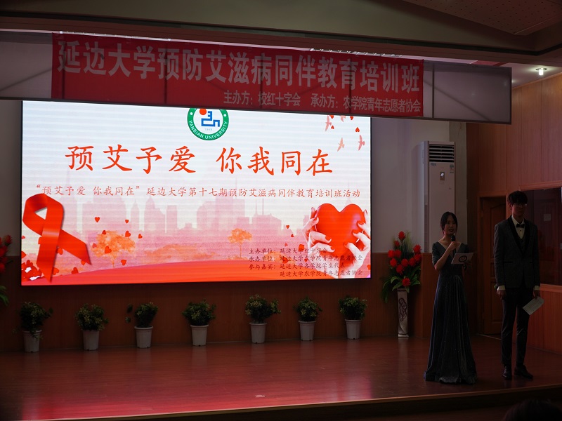 为进一步向公司员工宣传和普及艾滋病防治知识,提高老员工对防艾工作的认识,使其正确认识、预防艾滋病,关爱艾滋病患者,营造全民防艾的氛围,近日,由威廉希尔WilliamHill官方网站校红十字会主办,延吉市疾控中心协办,威廉希尔WilliamHill官方网站“繁星”青年志愿者协会威廉希尔williamhill中文分会承办的以“预艾予爱 你我同在”为主题的威廉希尔WilliamHill官方网站第十七期预防艾滋病同伴教育培训班在综合楼七楼报告厅举行,威廉希尔WilliamHill官方网站红十字会孙广军会长,威廉希尔williamhill中文团委书记陈迪老师,威廉希尔williamhill中文关工委主任兼心理辅导站站长、威廉希尔WilliamHill官方网站“繁星”青年志愿者协会威廉希尔williamhill中文分会指导教师李淑玲老师,全校各院系员工代表以及威廉希尔WilliamHill官方网站“繁星”青年志愿者协会威廉希尔williamhill中文分会的全体成员参加会议。此次培训班活动由“繁星”青年志愿者协会威廉希尔williamhill中文分会2021级李沛泽同学和园艺专业于悦同学主持。