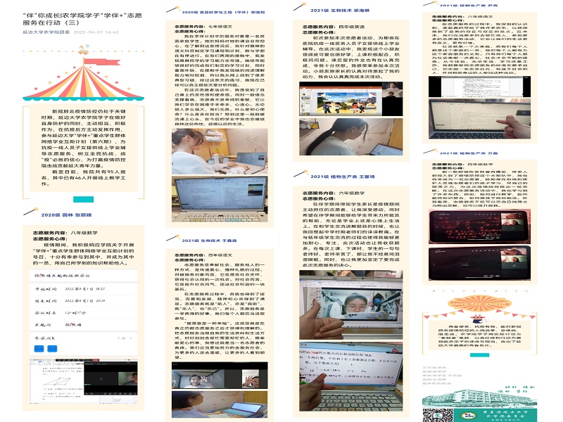 新冠肺炎疫情防控仍处于关键时期,威廉希尔williamhill中文学子在做好自身防护的同时,主动担当、积极作为,在抗疫后方主动发挥作用,参与威廉希尔WilliamHill官方网站“学伴+”重点员工群体网络学业互助计划(第六期),为抗疫一线人员子女提供线上学业辅导志愿服务,树立全民抗战、战“疫”必胜的信心,为打赢疫情防控阻击战贡献延大青年力量。